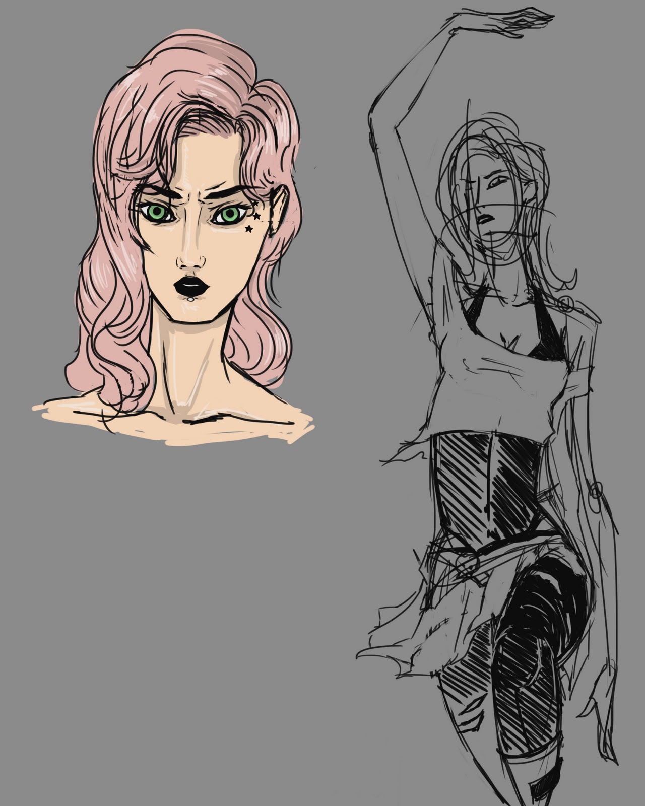 Brainfart #2: This lady here is also in the Sci-fi novel like the two derps above. She is obviously ot from the same team and cult like them; she is one of those "Freedom Fighters" and obviously she is like the "female-character-that-is-following-the-main-character-and-everybody-loves-her-because-of-that"-kind of character, so obviously she is going to seem a bit interesting in some way. I have been wrestling a bit with her design, I wanted her to seem a bit more "free" in her clothing, and not tightened up and stiff like some of the other characters in the story. I like how it looks like so far, but I am still unsure so she is still WIP.